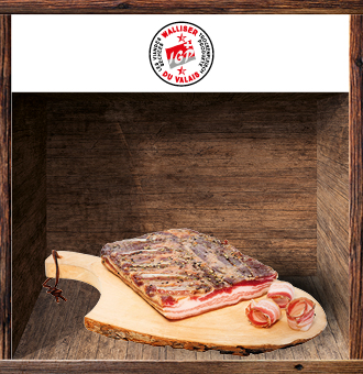 - Walliser Trockenspeck IGP auf Walliser Roggenbrot AOP